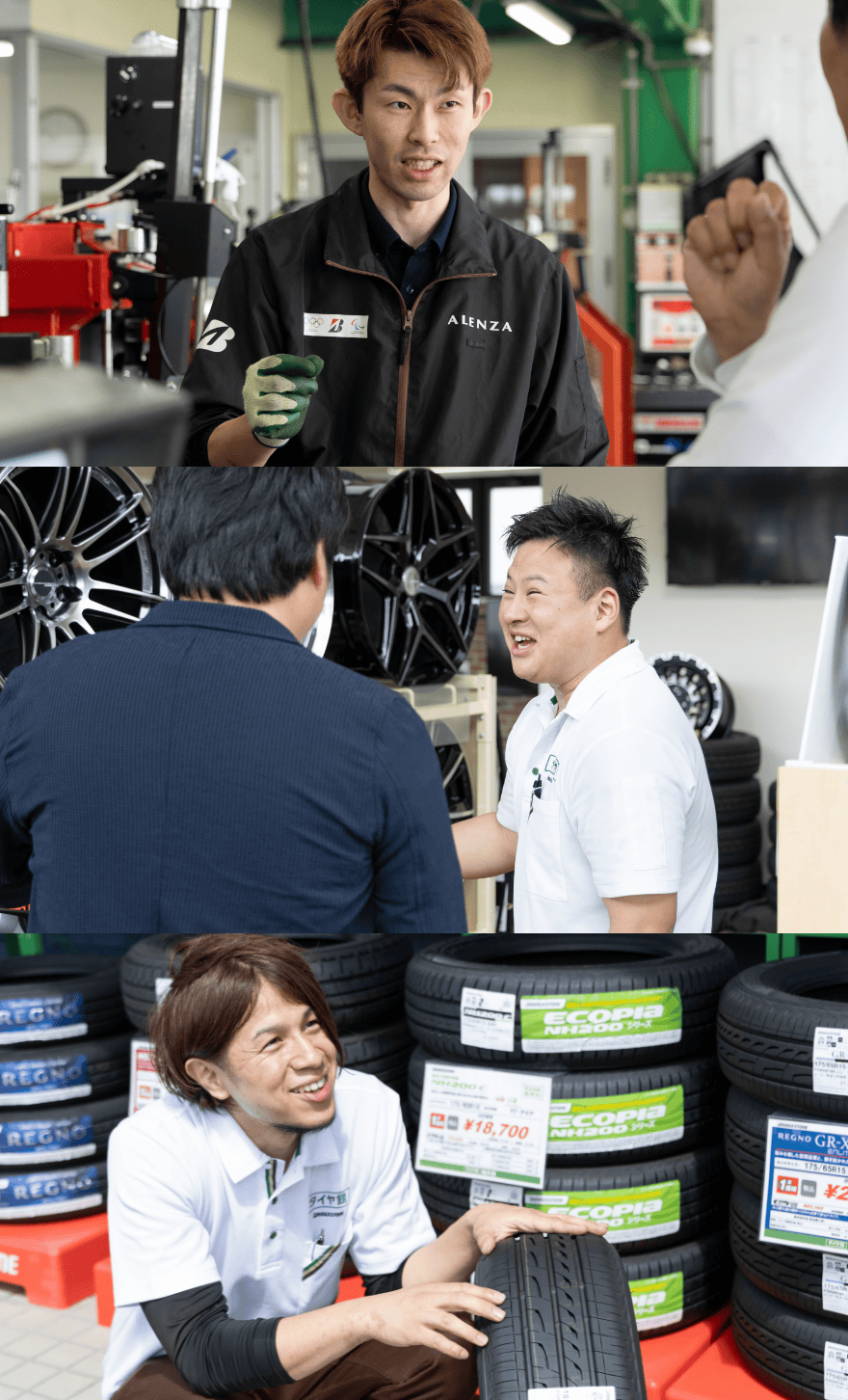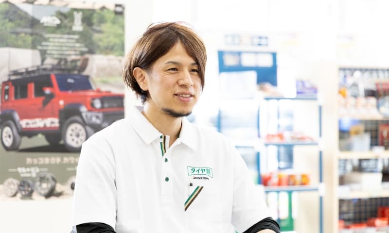 入社前はタイヤのことは何も知らず、ホイールのサイズやタイヤの種類、車種による違いなど初めて知ることばかりでしたが、分からないことも丁寧に教えていただき、今では自分が提案した商品をお客様が選んでくださるときにやりがいを感じます。