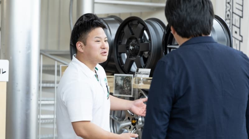 お客様がタイヤやホイールを取り付けて喜んでくださる瞬間に一番やりがいを感じます。そのためにも、お客様のご要望をしっかり聞き取り、ぴったりの提案ができるよう、心がけています。